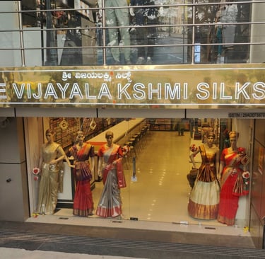 Welcome to Sree Vijayalakshmi Silks, your trusted silk saree destination in Jayanagar 4th Block, Bengaluru. Nestled near the iconic BDA complex, we offer a wide range of traditional and modern silk sarees, including Kanjivaram, Banarasi, Tussar, and more. Explore our exquisite collections, perfect for weddings and special occasions. Visit us to experience timeless elegance and unmatched craftsmanship.